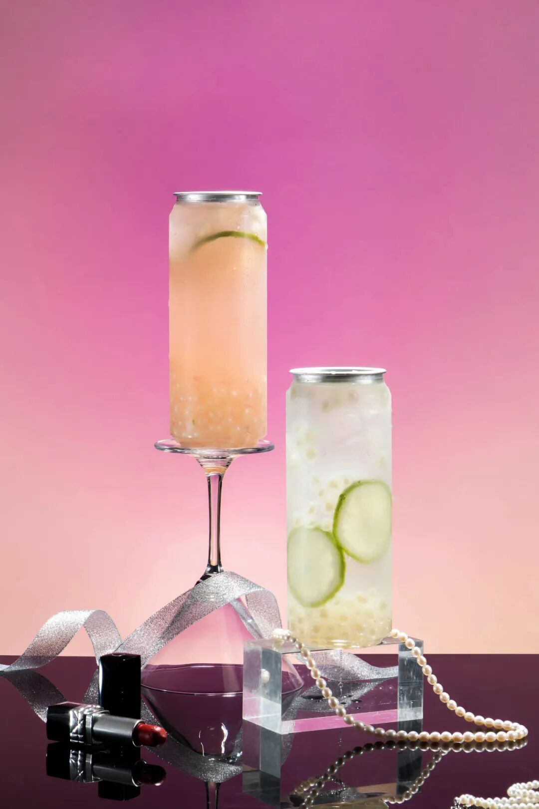 1.出品杯中加入爆爆珠50g备用,香水柠檬1片